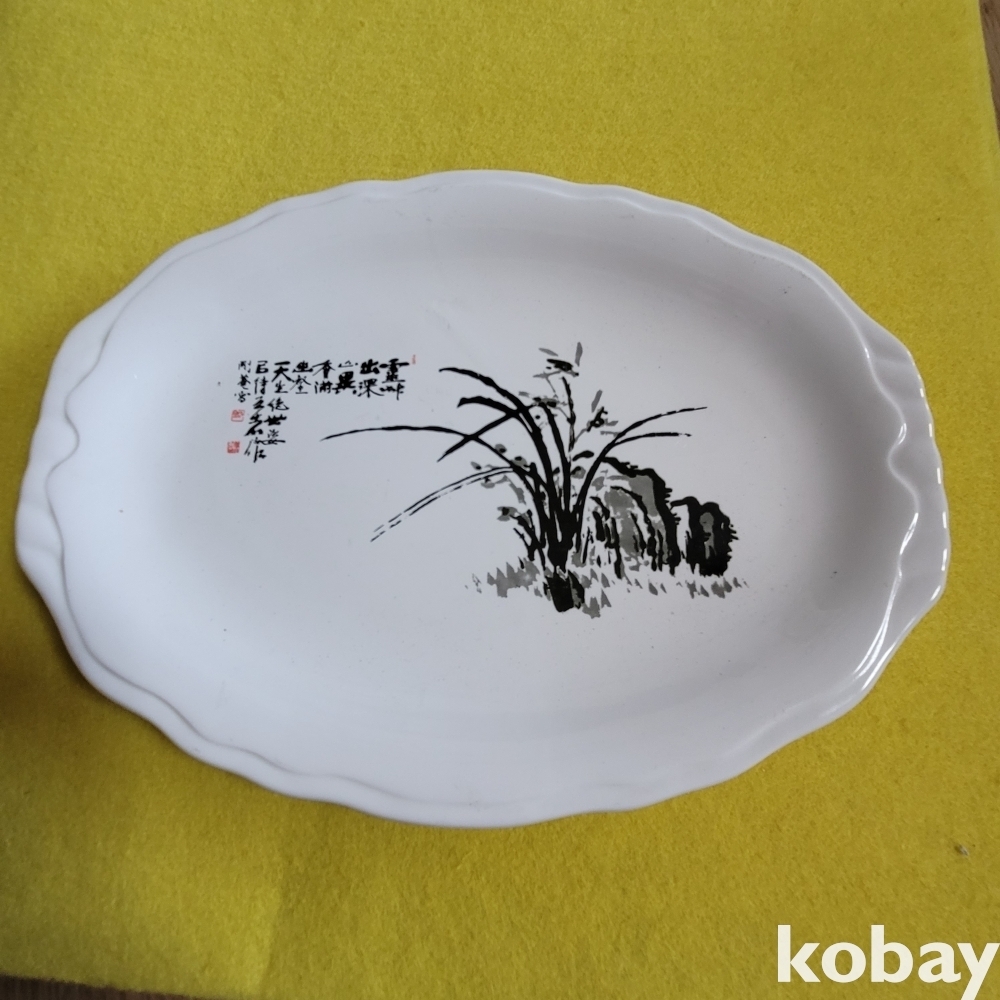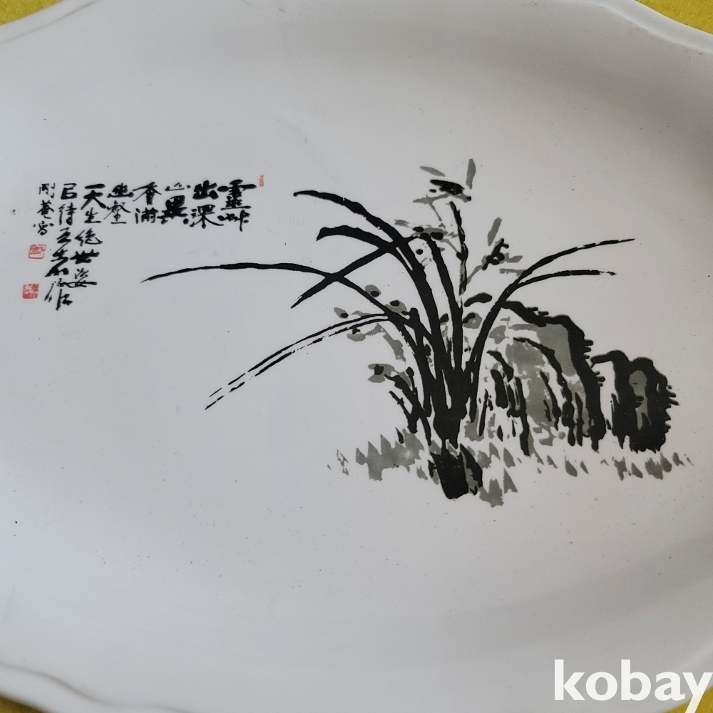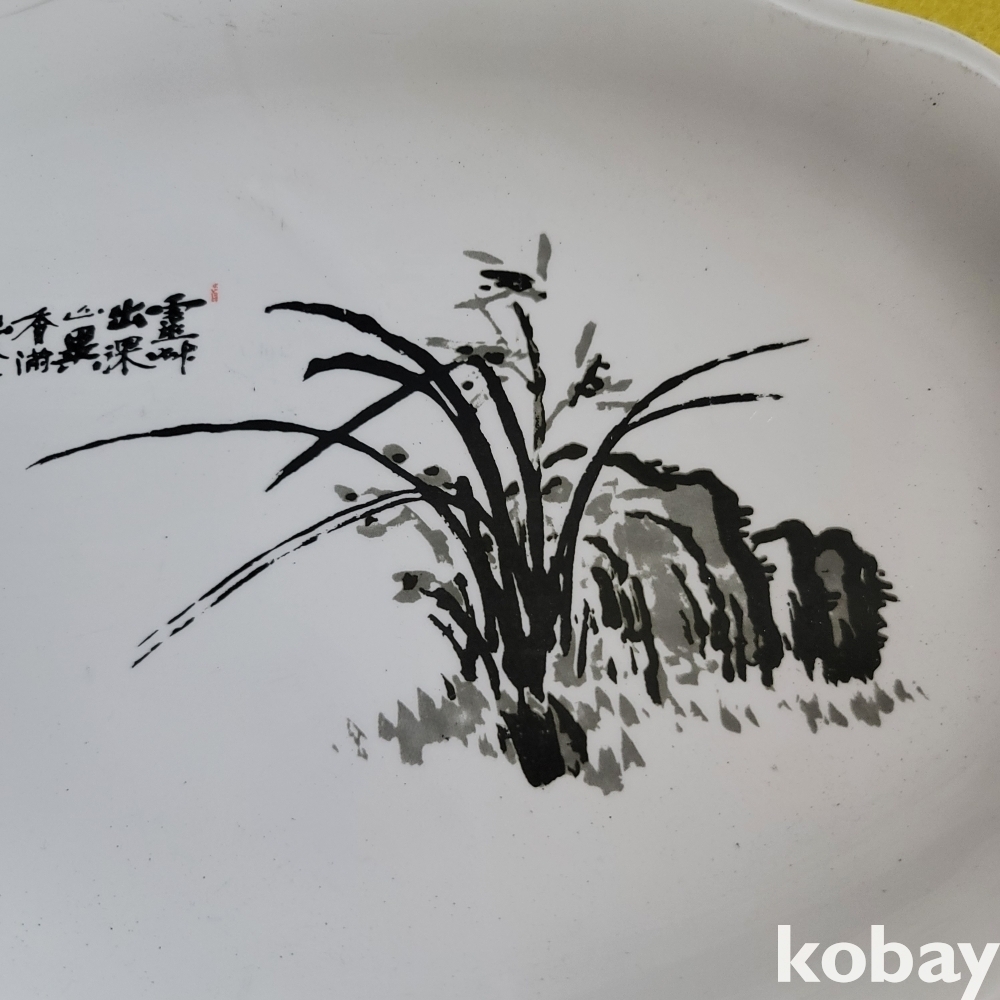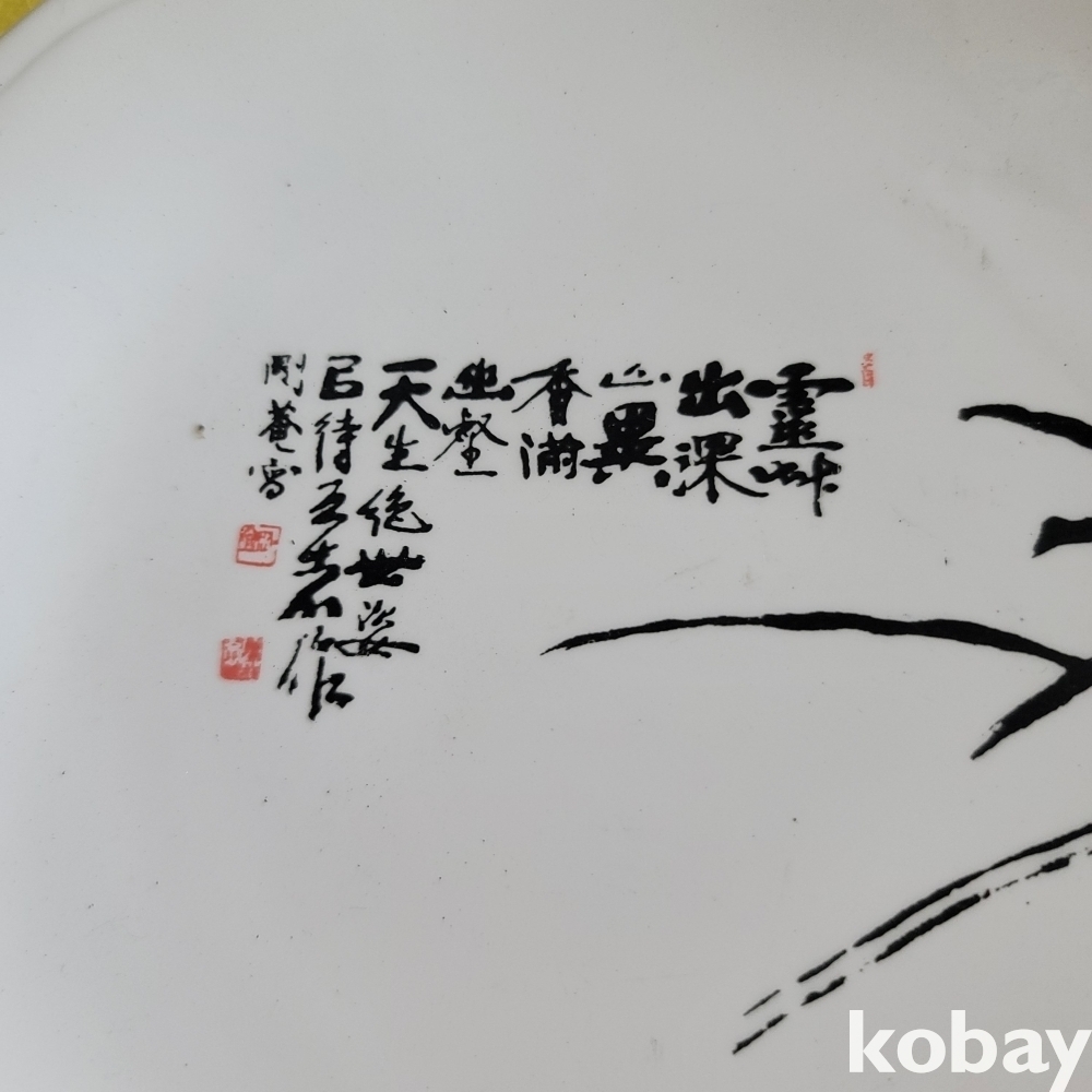 (((근현대사자료))) 오래전 蘭그림과 한문서체가 멋진 도자기 접시 (전북도지사 贈)