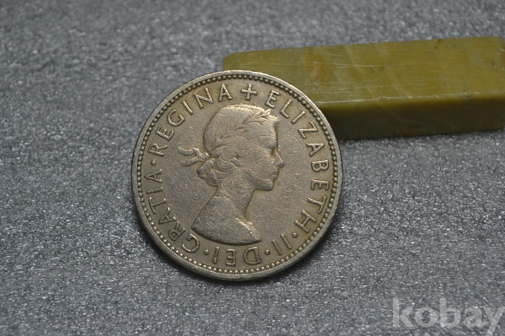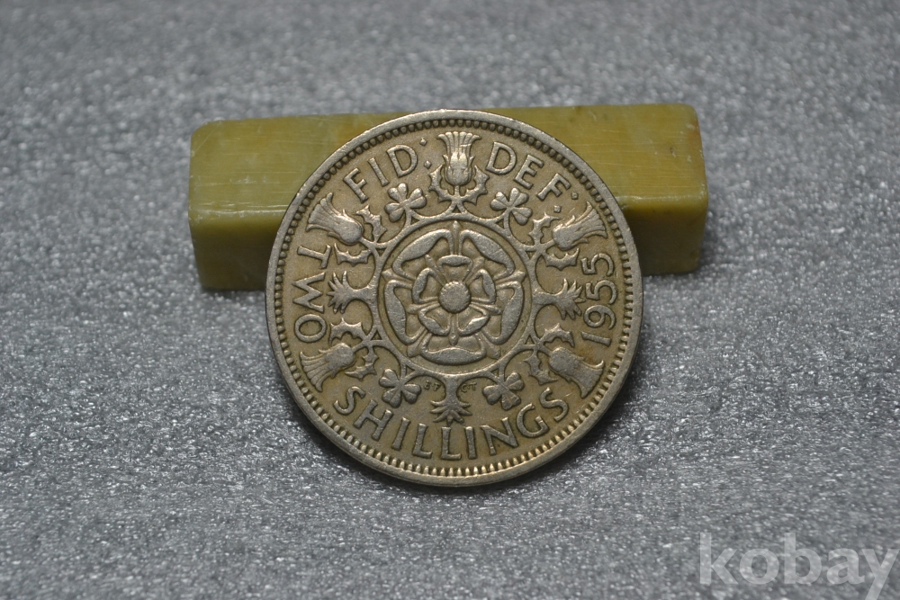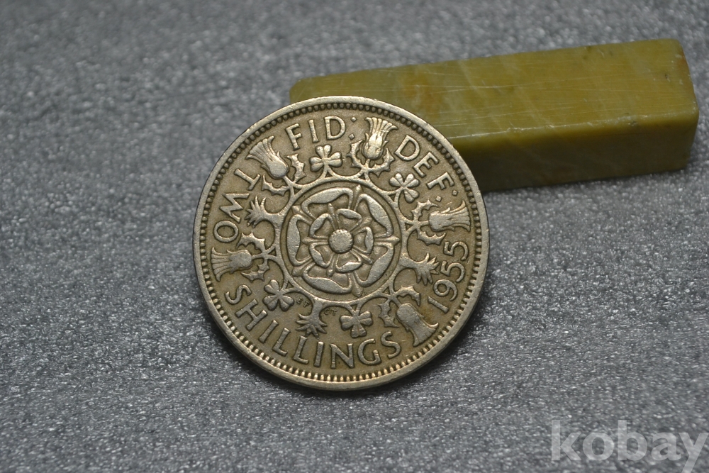 이미 단종되어진 자주 안보이는 종류의 오래된 큰지름 사이즈 1955년도 발행된 영국 2실링 백동화 입니다. (사진참조)