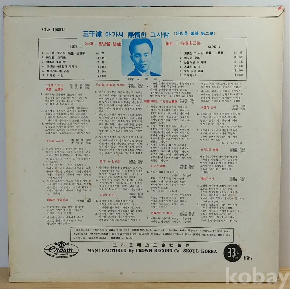 은방울 자매 가요 제2집 (삼천포 아가씨 / 무정한 그 사람) 크라운레코드