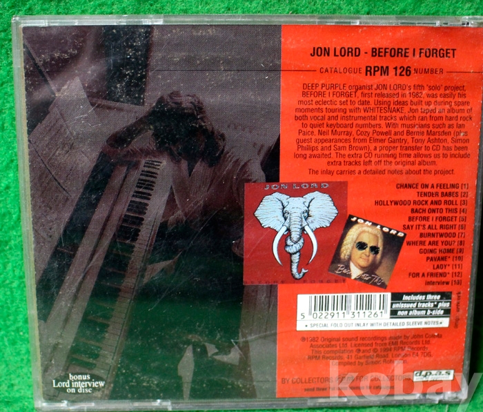 (미국제작 CD) Jon Lord - Chance on a feeling / Before I forget...