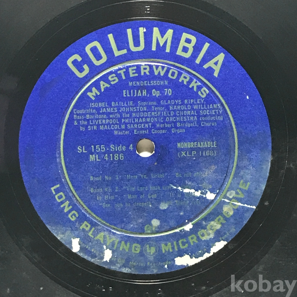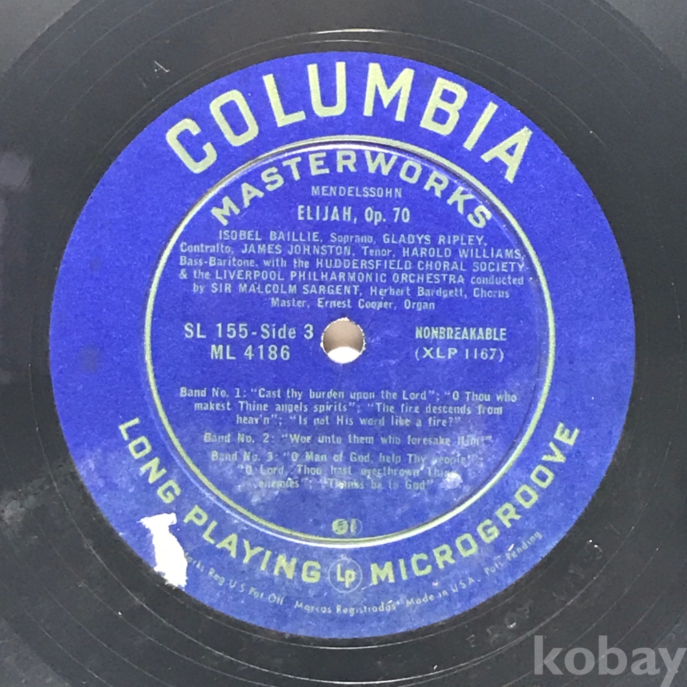 LP 83,623-101 MENDELSSOHN ELIJAH, Op. 70 - ISOBEL BAILLIE Soprano - GLADYS RIPLEY . 자켓 無 알판 VG+ 수입반