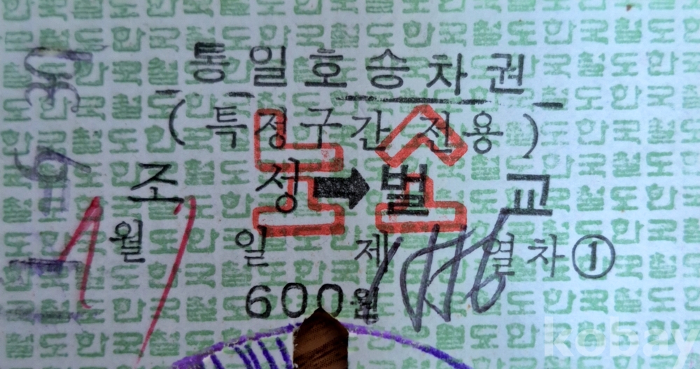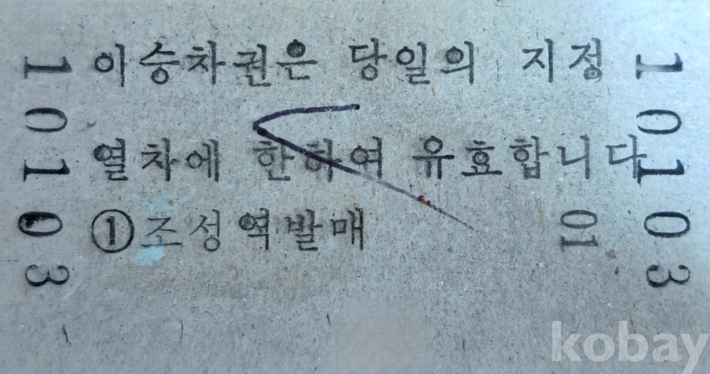 통일호 승차권 조성-벌교 특정구간 노소입니다.