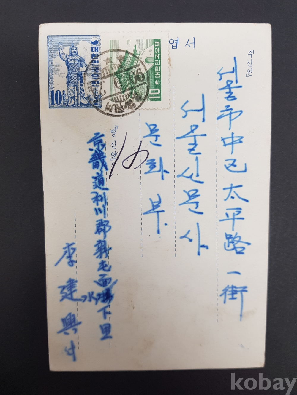 **** [利川자료] 10환 을지문덕(대한민국우편)+10환 첩부 실체/京畿利川.90.9.24
