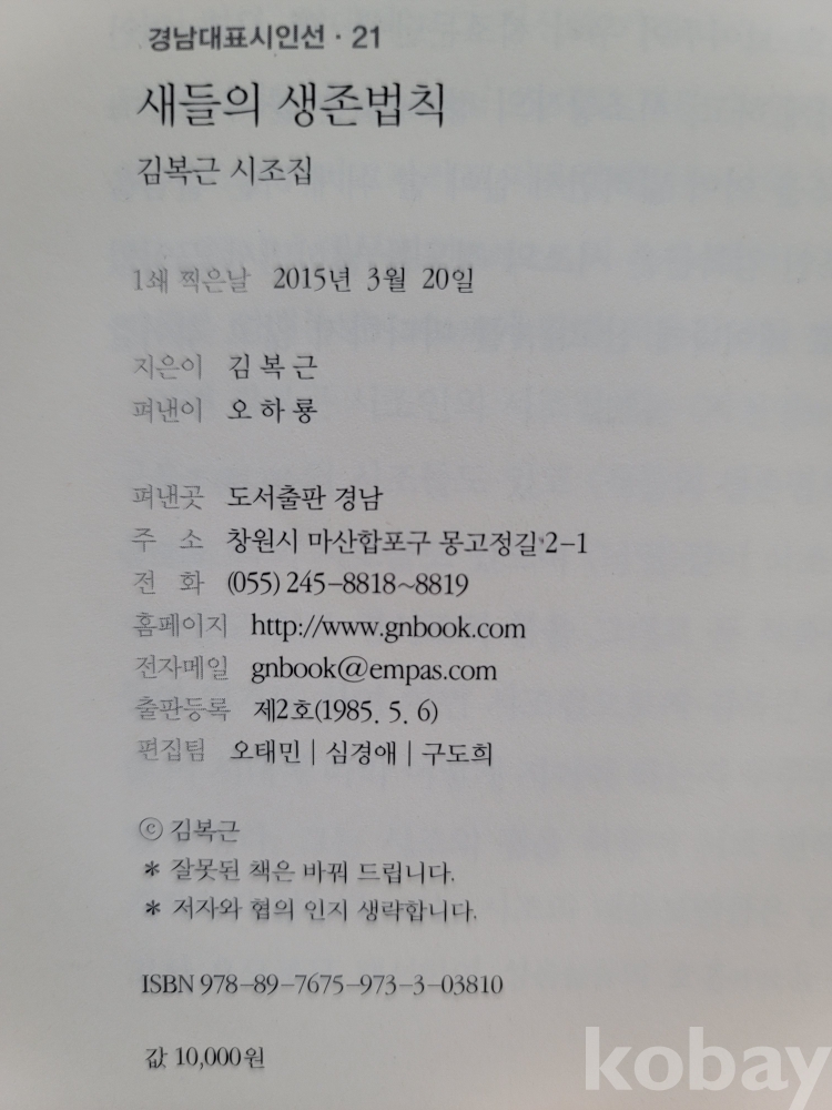 도서출판 '경남'에서 '경남대표 시인선[21]'으로 발행.