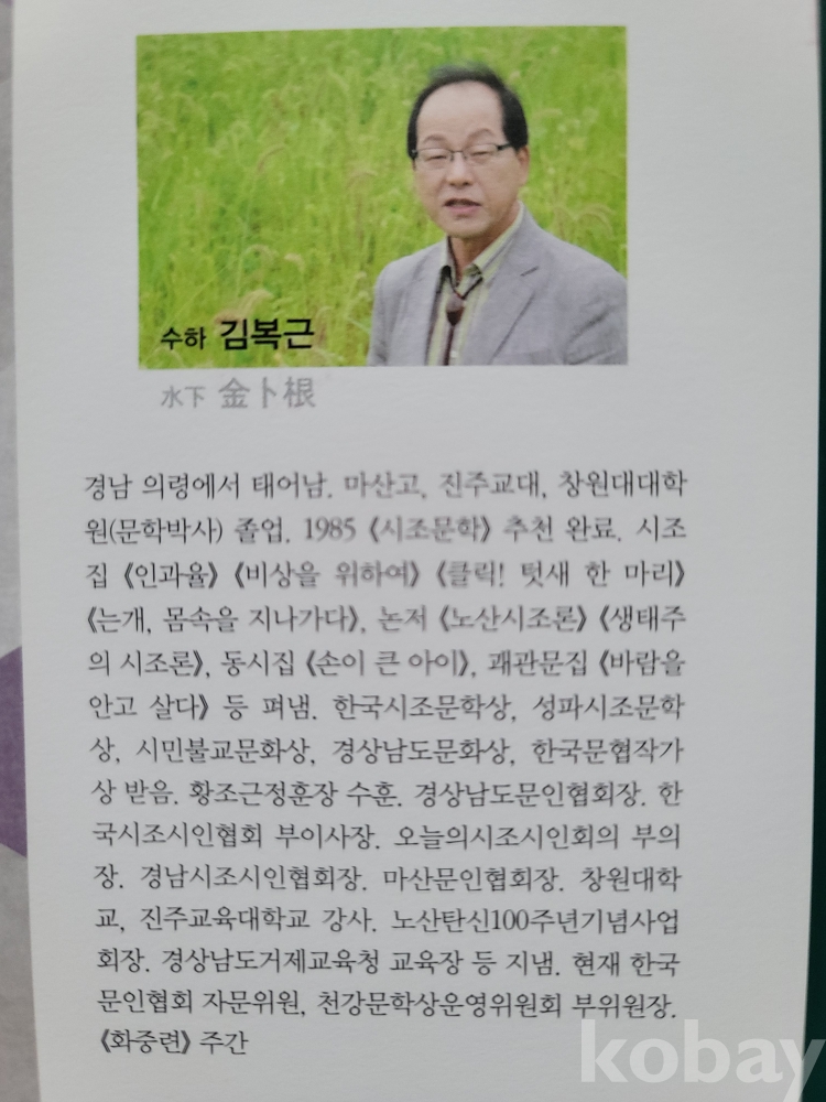 김복근(경상남도 의령: 1950) 저자서명 시조집.