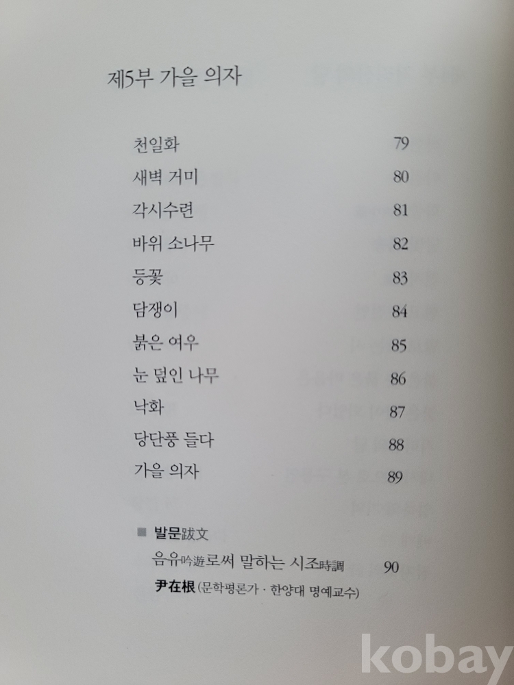 윤재근 교수(문학평론가)의 跋文. 5부 67편의 작품.