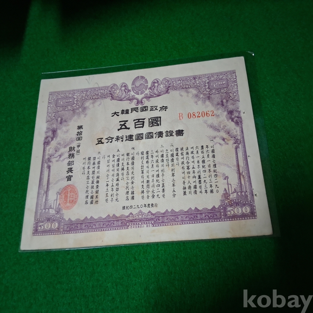 대한민국 1957년 건국채권 10회 갑조500환 사용제