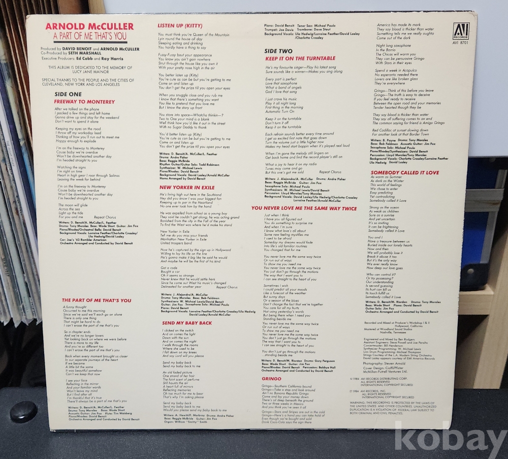 1984년 미국 AVI Records 발매 초반 프레싱 LP입니다.