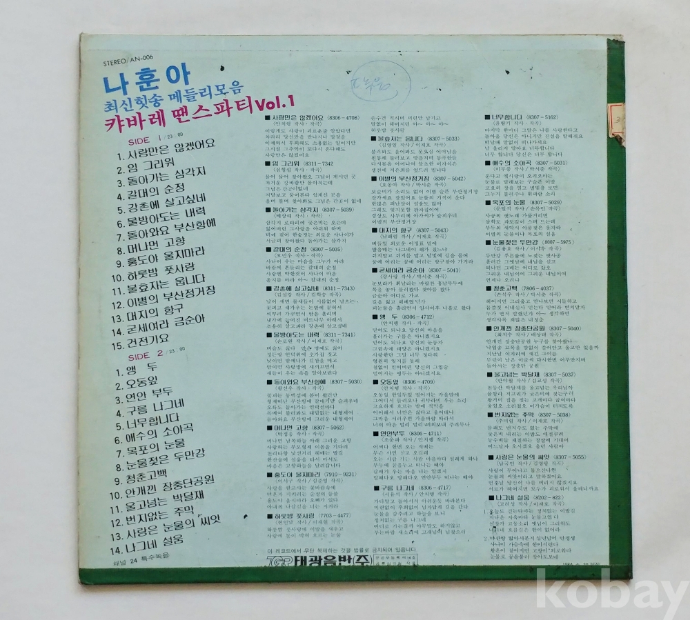 EX : 약간의 마모, 모서리 찢김 존재 음반상태