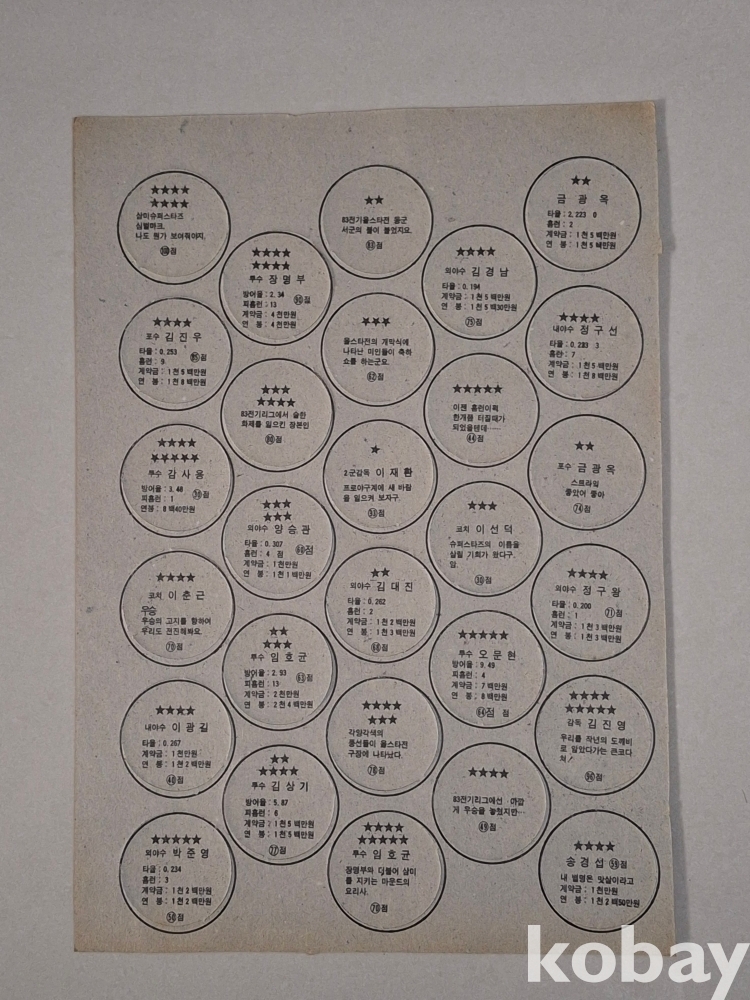 1983년 초창기 프로야구 딱지로