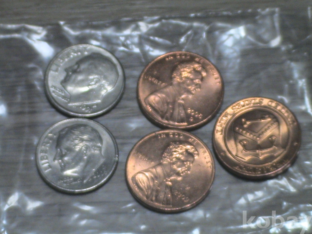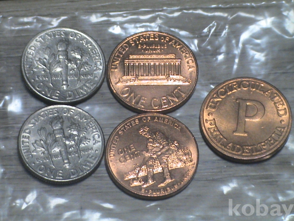 나머지는 미사용 루즈벨트다임2점, 링컨2점, 영국주화 2점(하나는 사용극미급.)