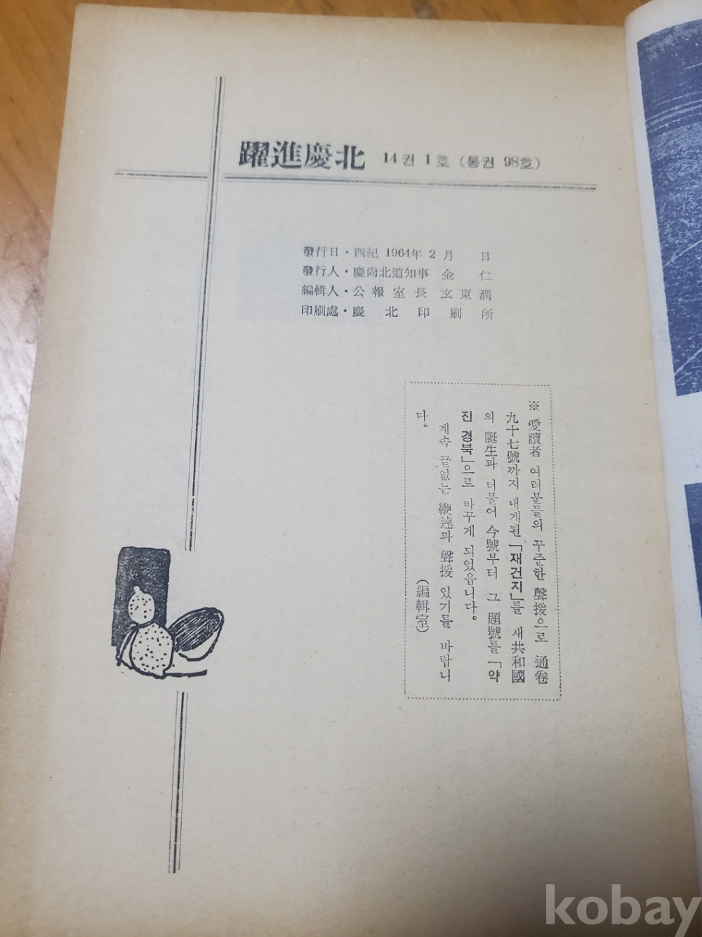 1. 약진경북 통권 98호, 경상북도, 1964년, 160쪽, 상태 상, 사진 참조