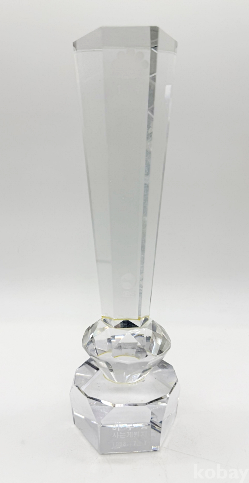 상품설명 | 1993년 KBS 가요톱텐에서 가수 이무송이 대표곡 '사는게 뭔지'로 1위를 수상하며 받은 트로피이다. 이무송은 해당곡으로 1993년 6월 23일부터 7월 21일까지 5주 연속 1위를 차지하며 골든컵을 수상했다. | ||