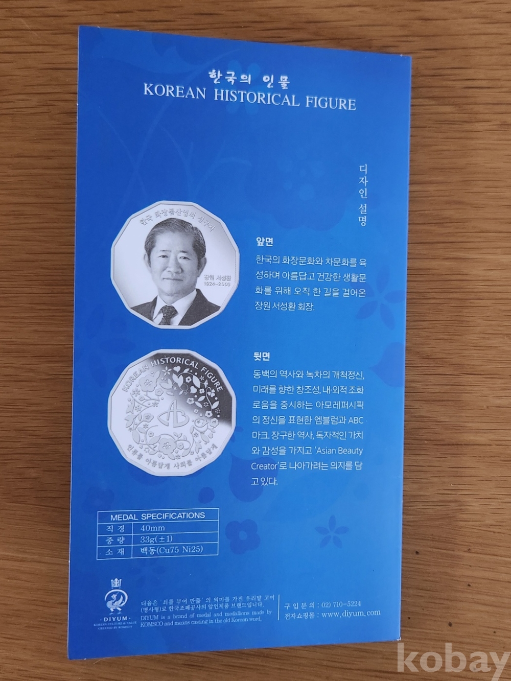 한국의인물 장원 서성환/소재 백동메달/아름답고 건강한 생활문화 개척자 -17