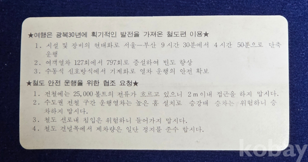 ☆여행은 광복30년에 획기적인 발전을 가져온 철도편 이용☆