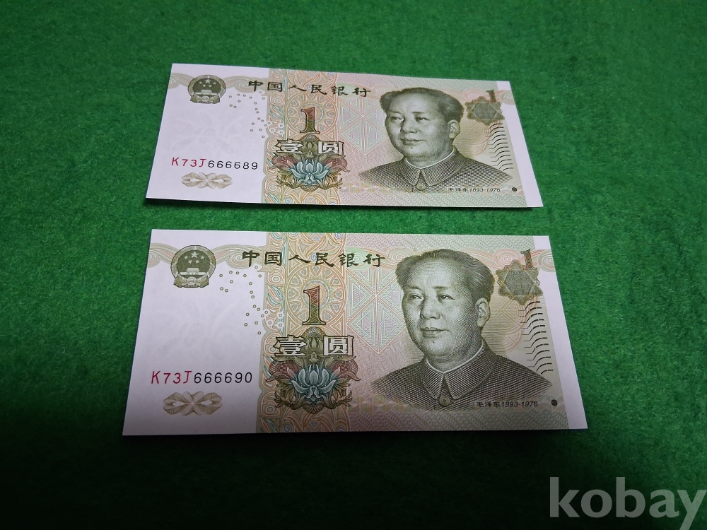(외국지폐) 중국 연번 지폐 2장-미사용