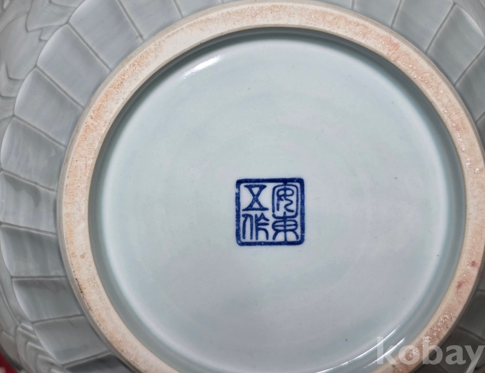 인간문화재 호산 안동오 선생님의 청화백자 진사채 나비 목단 양각 양이오 편병 대형 입니다