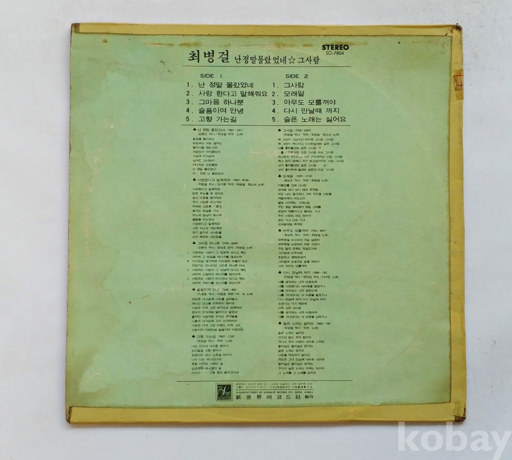 | 자켓상태 | EX : 약간의 마모, 모서리 찢김 존재 | 음반상태 | NM : 개봉했으나 미사용급, 스크래치 없음 | 발매정보 | 알수없음 | 가사지여부 | 무 |