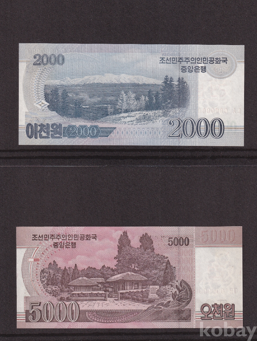 - 윗동네 2008년 이천원 / 오천원 000 견본 미사용 지폐 - 2장 일괄