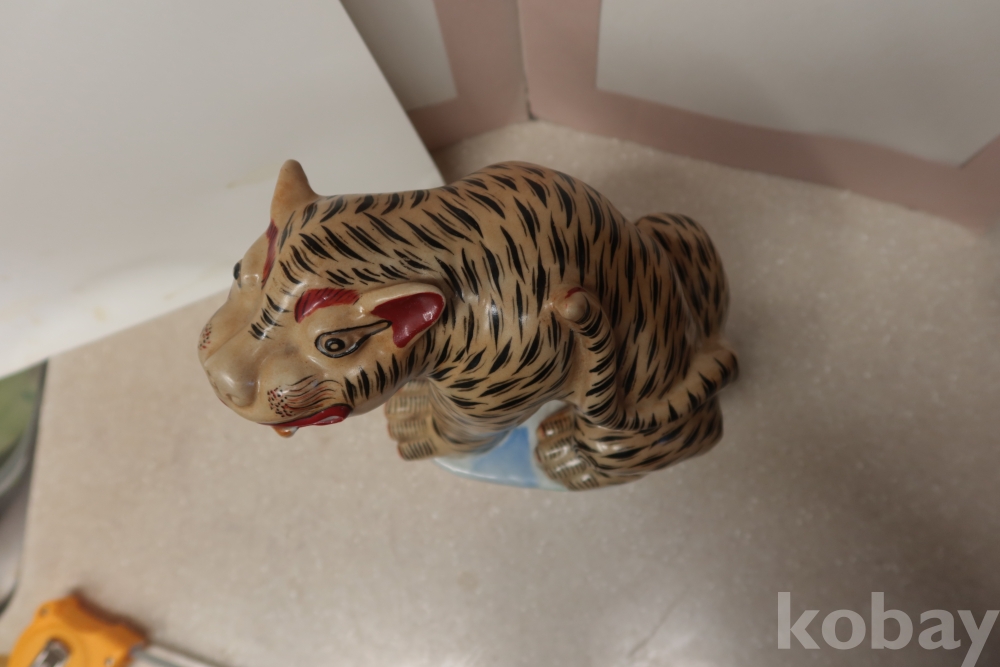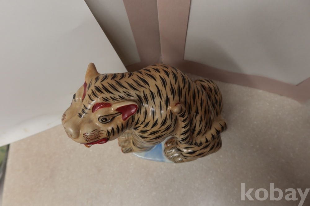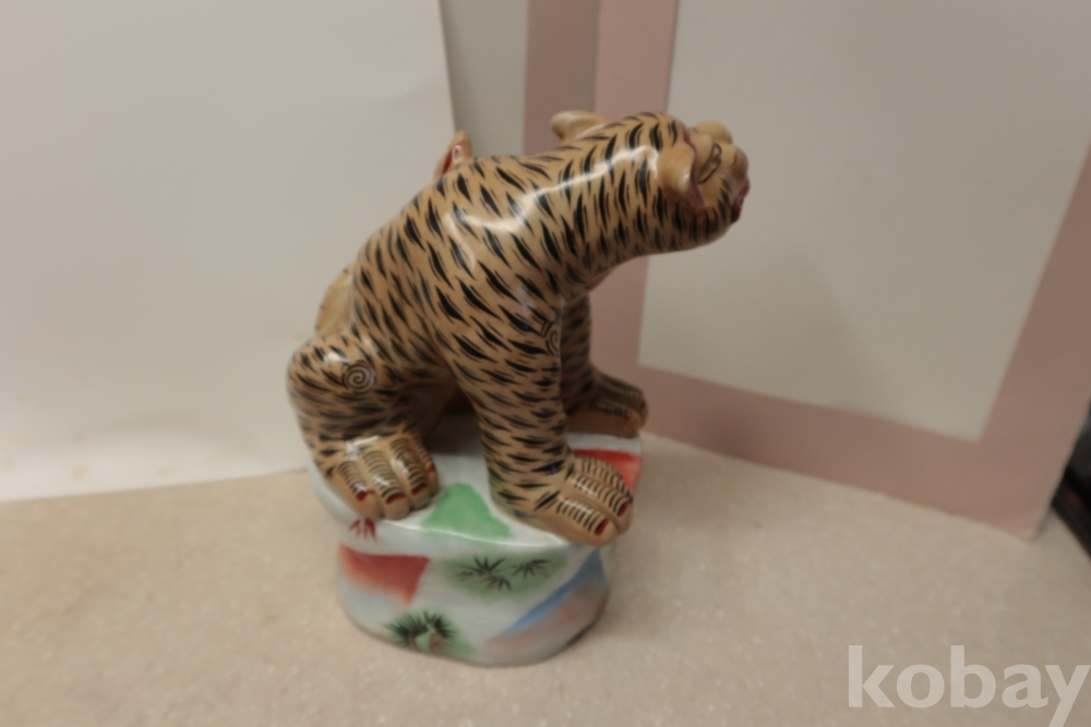 명치기 혹은 1920대 일본 이마리 도자기 임니다 호랑이를 디자인한 극히 귀한 명품 이며 한손으로 들기 힘든 무개감을 가진 명물 임니다 소성 당시 생긴 유 세월의 유가 받침대?부분에 보이는 상태 조은 명물 임니다 10사진 참조 단단 함니다