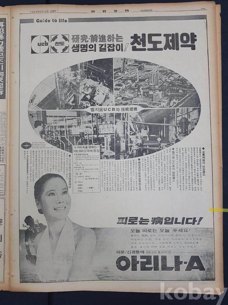 **** 1969.08.16(동아일보)/천도제약 아리나A 등 광고포함/약 8면