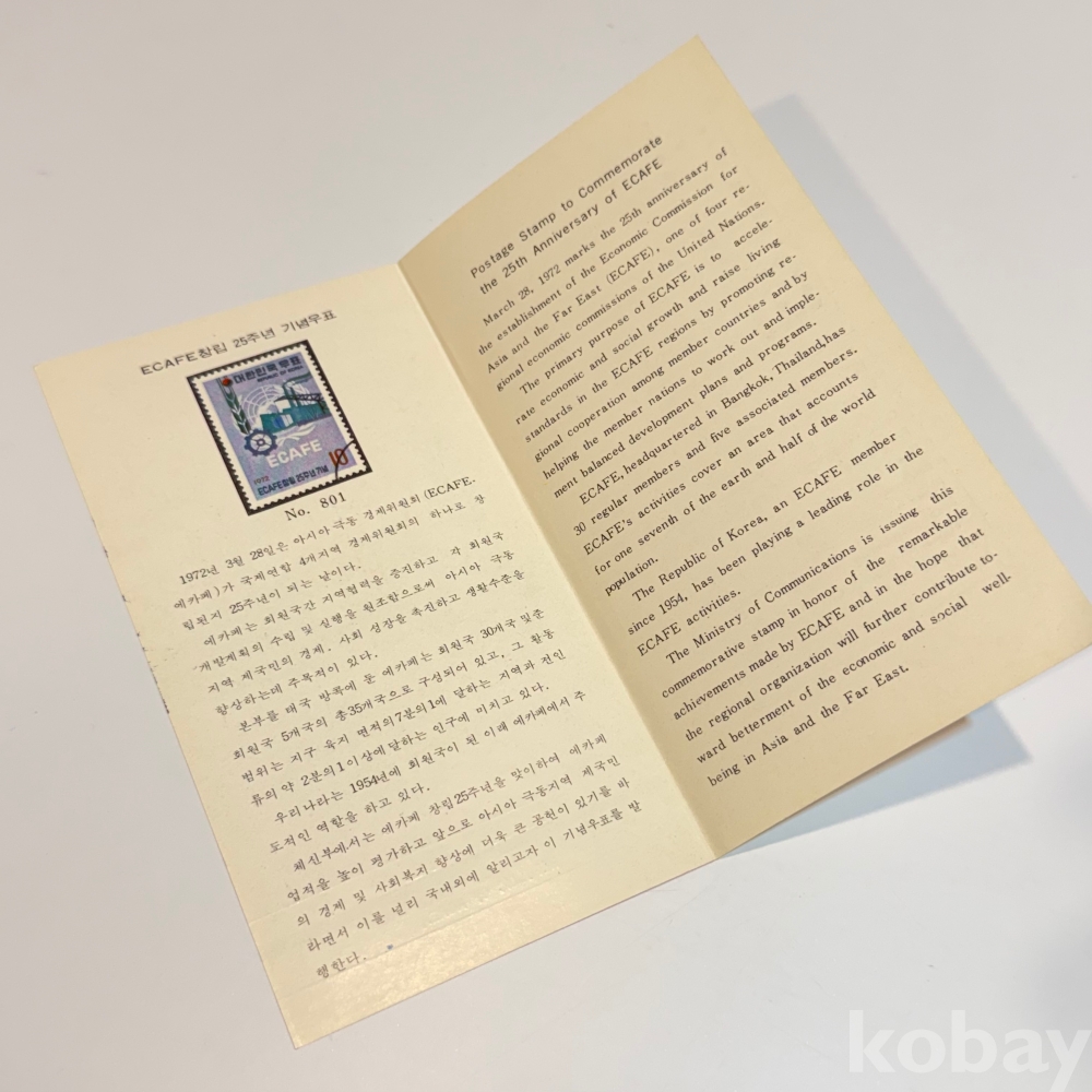 1972년, 한국 ECAFE 창립 25주년 기념 안내카드/ 우표