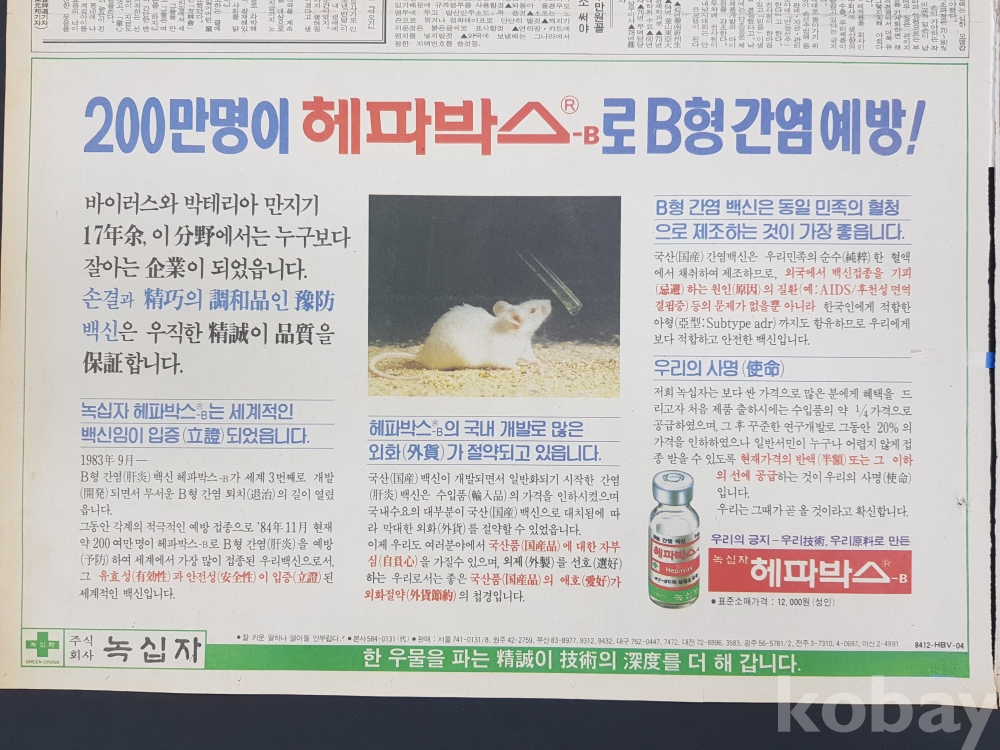 **** 1984.12.06(중앙일보)/녹십자 헤파박스-B 광고포함/약 12면