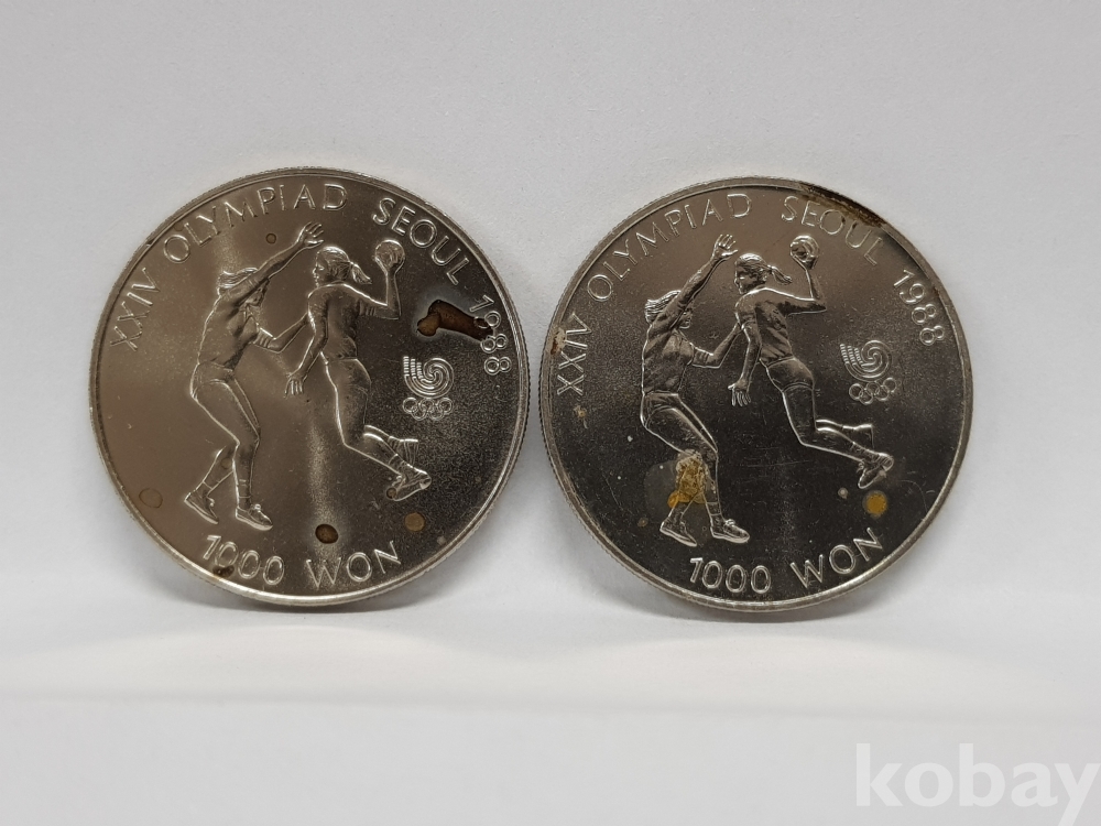 - 서울 올림픽 대회 3차 핸드볼 천원 기념주화 2종 모음