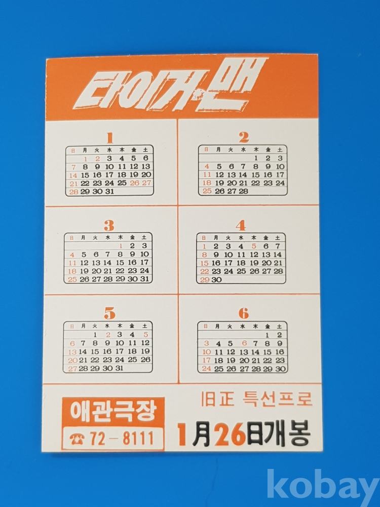 **** 영화카드*타이거맨/주윤발, 종초홍 출연/1990년 애관극장