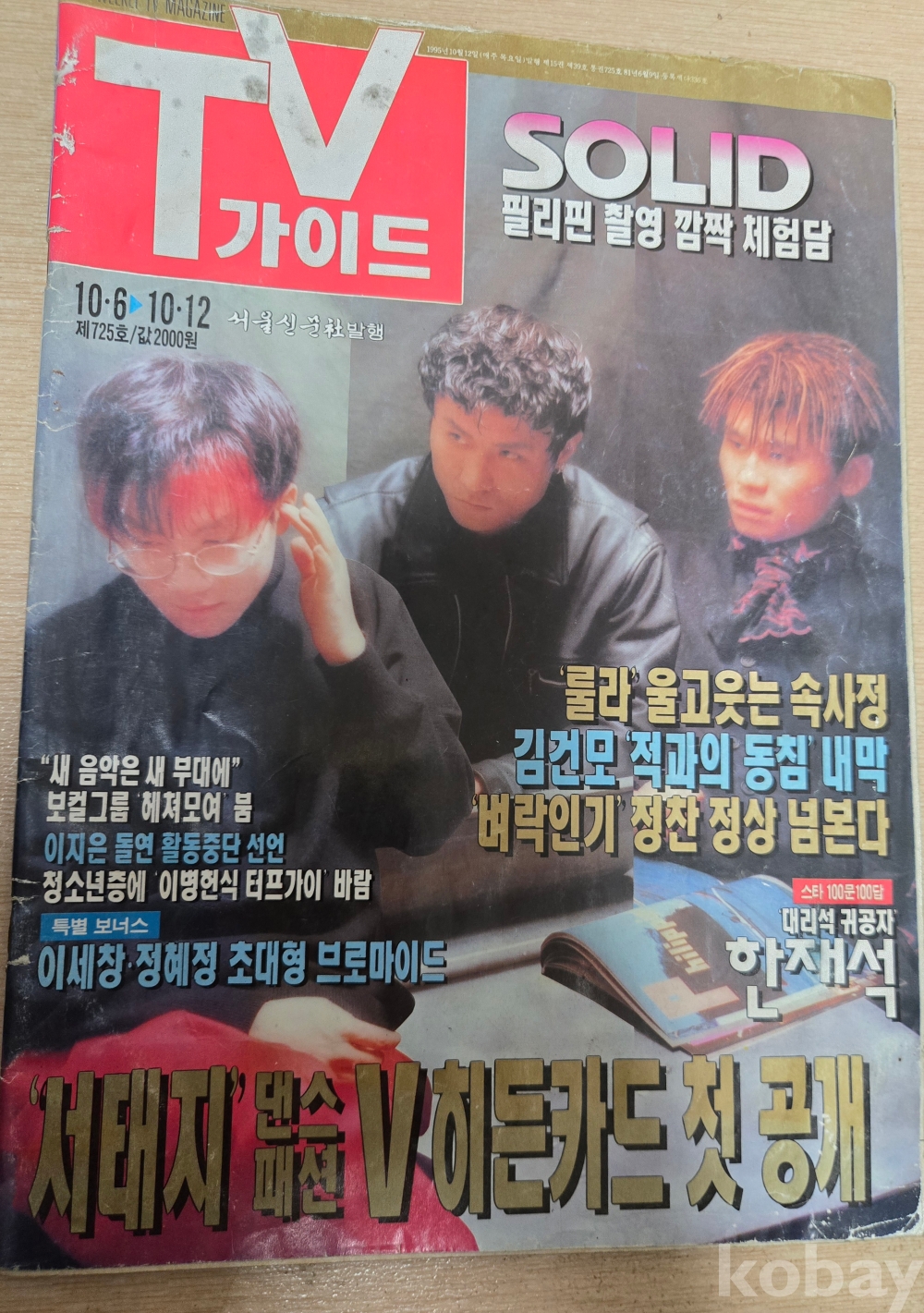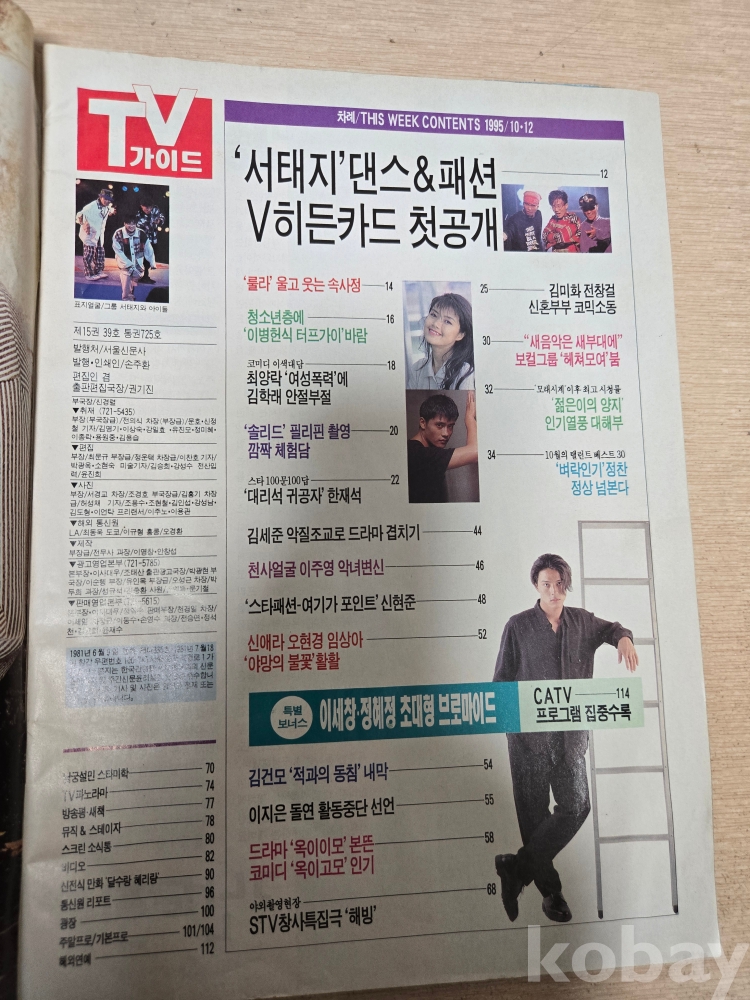 tv가이드 95년10월12일 725호 서태지와아이들 룰라 tv편성표 잡지 신문 만화 부록 상태 좋음
