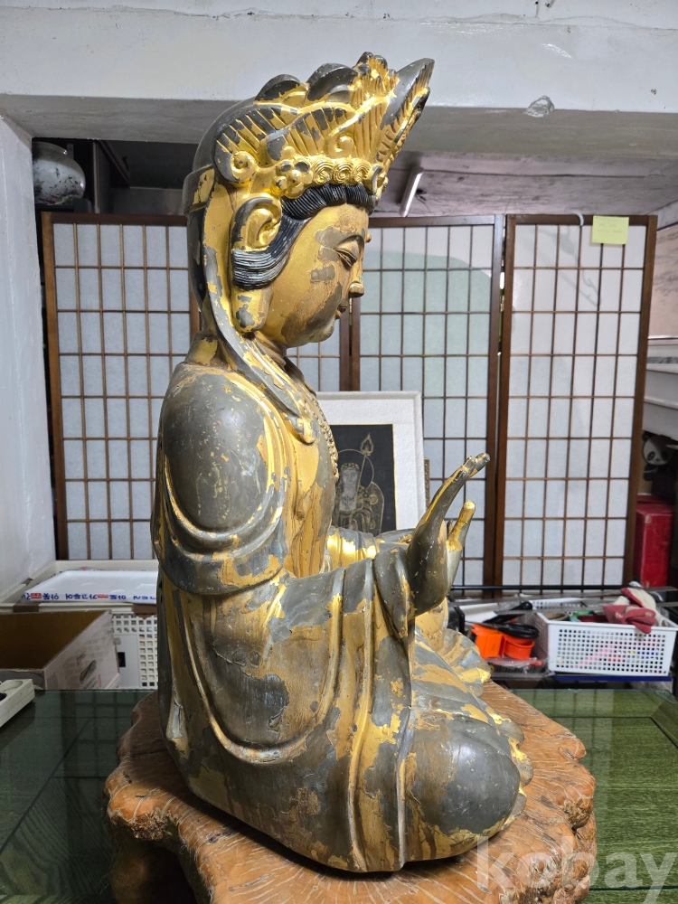 불상높이 68센티 바닥최대지름 45센티 중량은 22kg정도입니다.