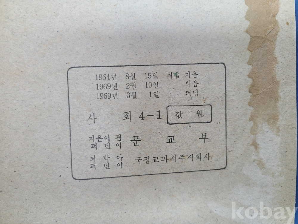 [교과서] 사회 4-1*1969년/문교부 발행,풀붙인 흔적 있음