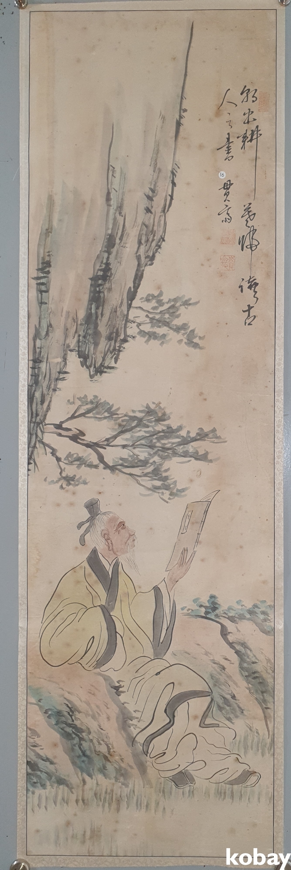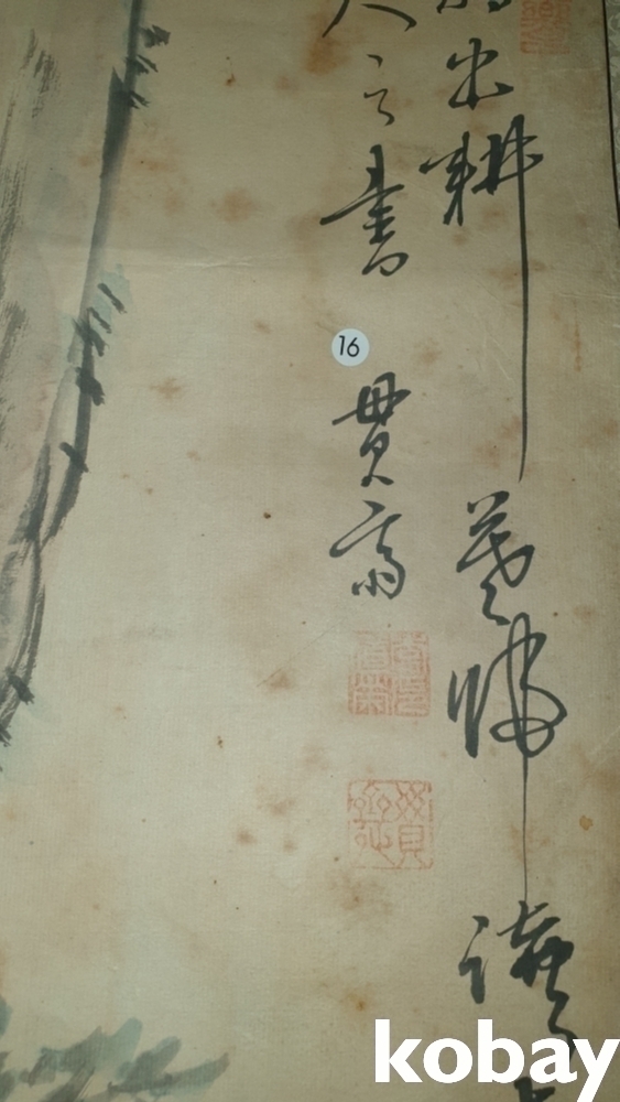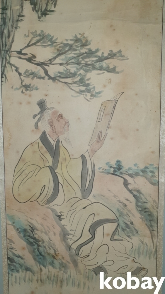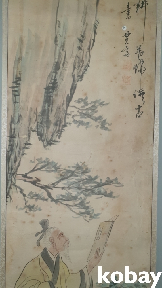 유명화가 관제 이도영(貫齋 李道榮 ) 수결과 낙관이 보이는 종이에 채색된 인물화입니다,