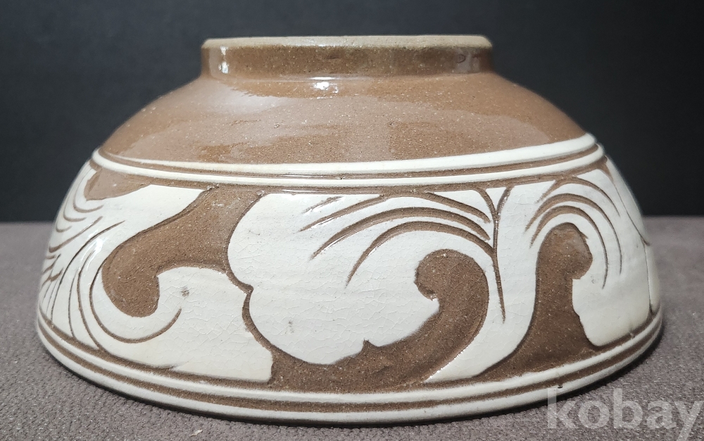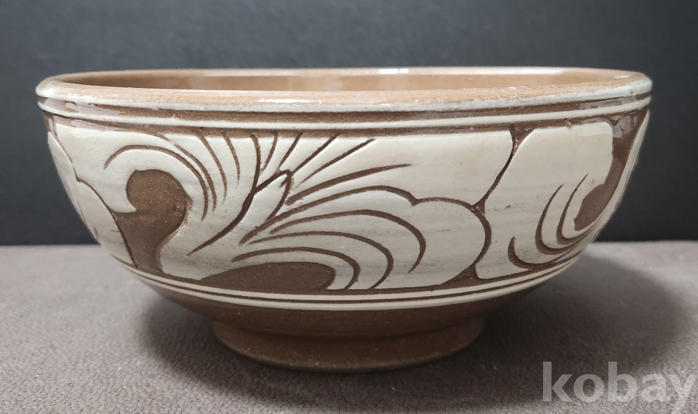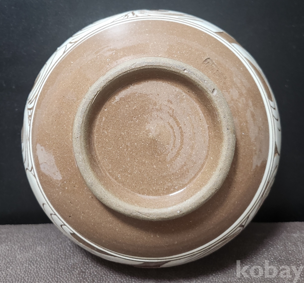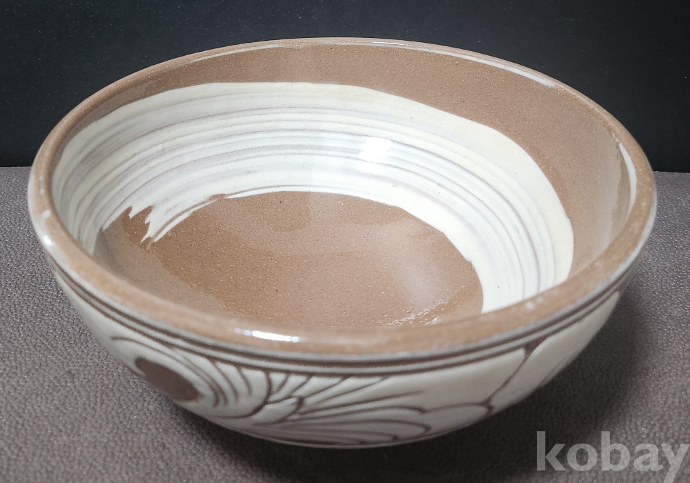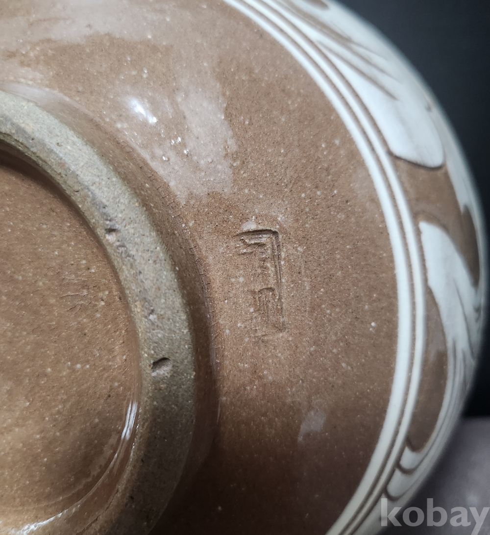 분청박지음각모란다완 粉靑剝地陰刻牡丹紋茶碗 < 도예가 음각 수결 作 >