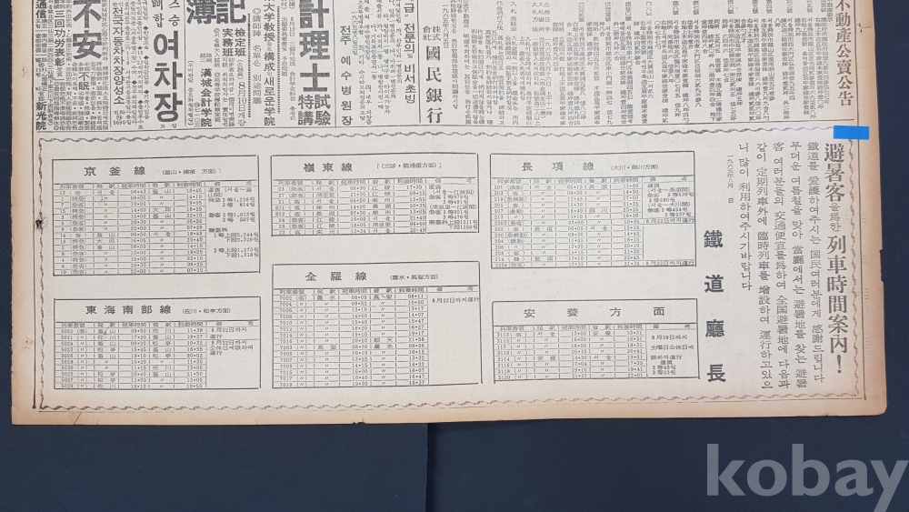 **** 1965.08.06(한국일보)/피서객을 위한 열차시간안내 광고포함/약 4면