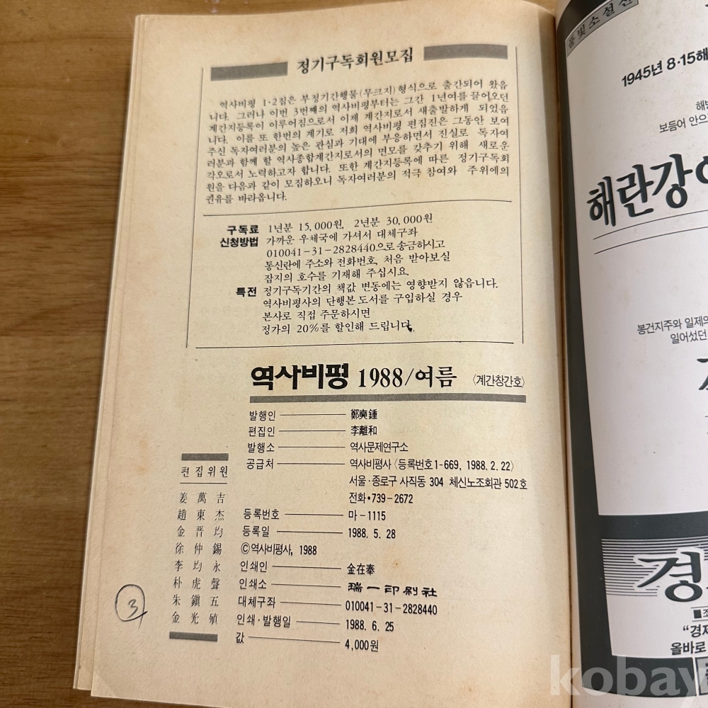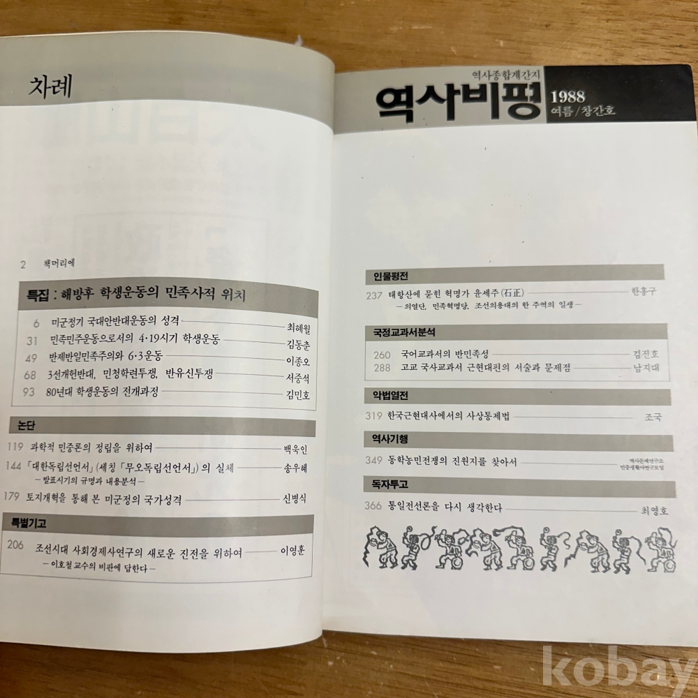 [한국현대사, 학생운동, 토지개혁, 사상통제법] 역사문제연구소, <역사비평 1988 여름>, p. 374, 상태 중급(책 표지, 사진참조)
