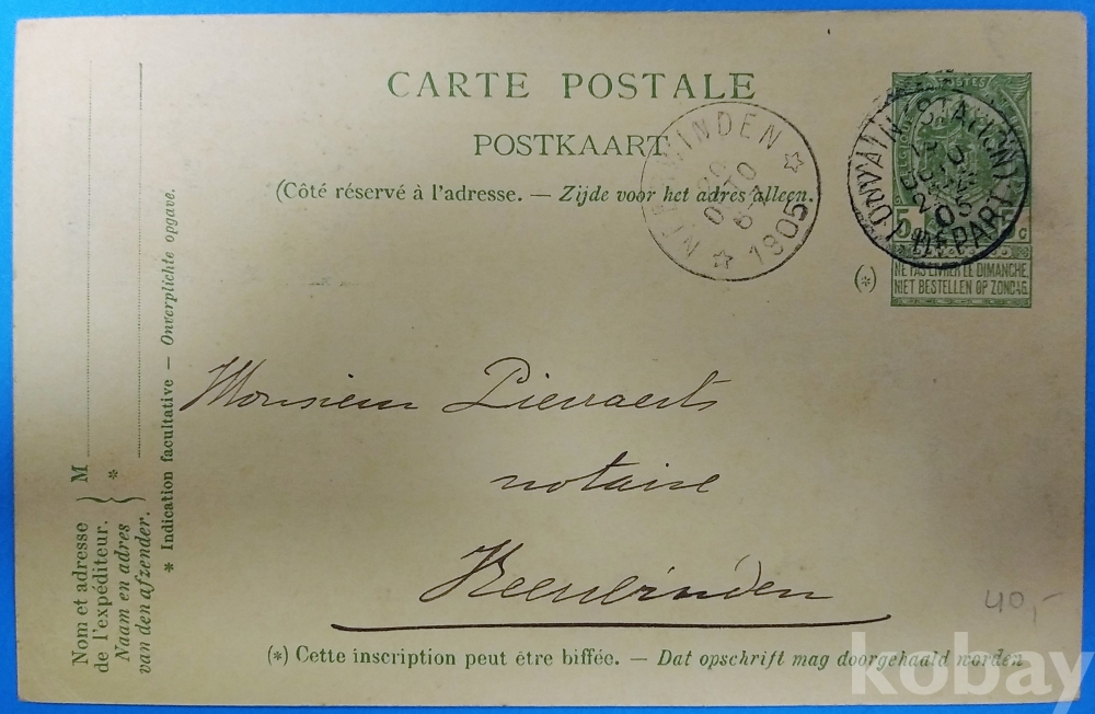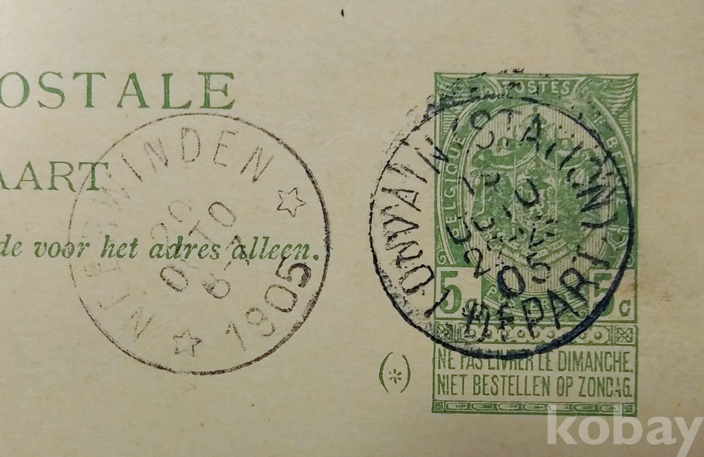 [흥미우표] 1905년 벨기에 일요일,공휴일 불배달엽서 실체
