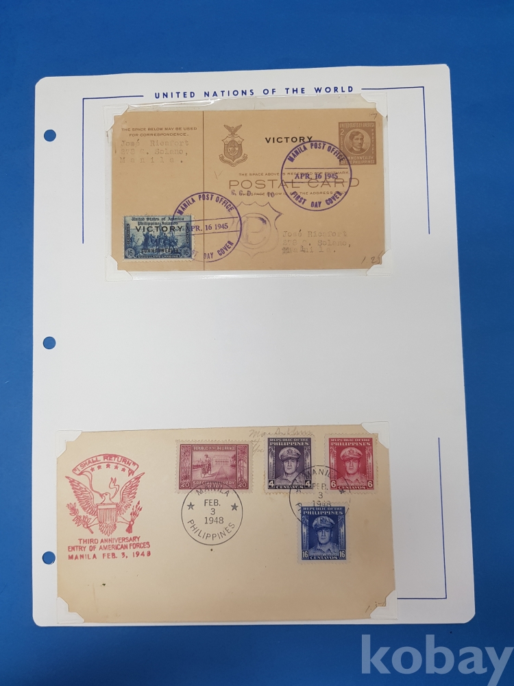 **** 필리핀 초일봉피 및 우표/REPUBLIC OF THE PHILIPPINES POSTAGE 등/1943-1948