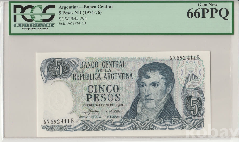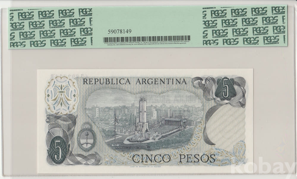 아르헨티나 지폐 1974-76년 5페소 PCGS 66등급