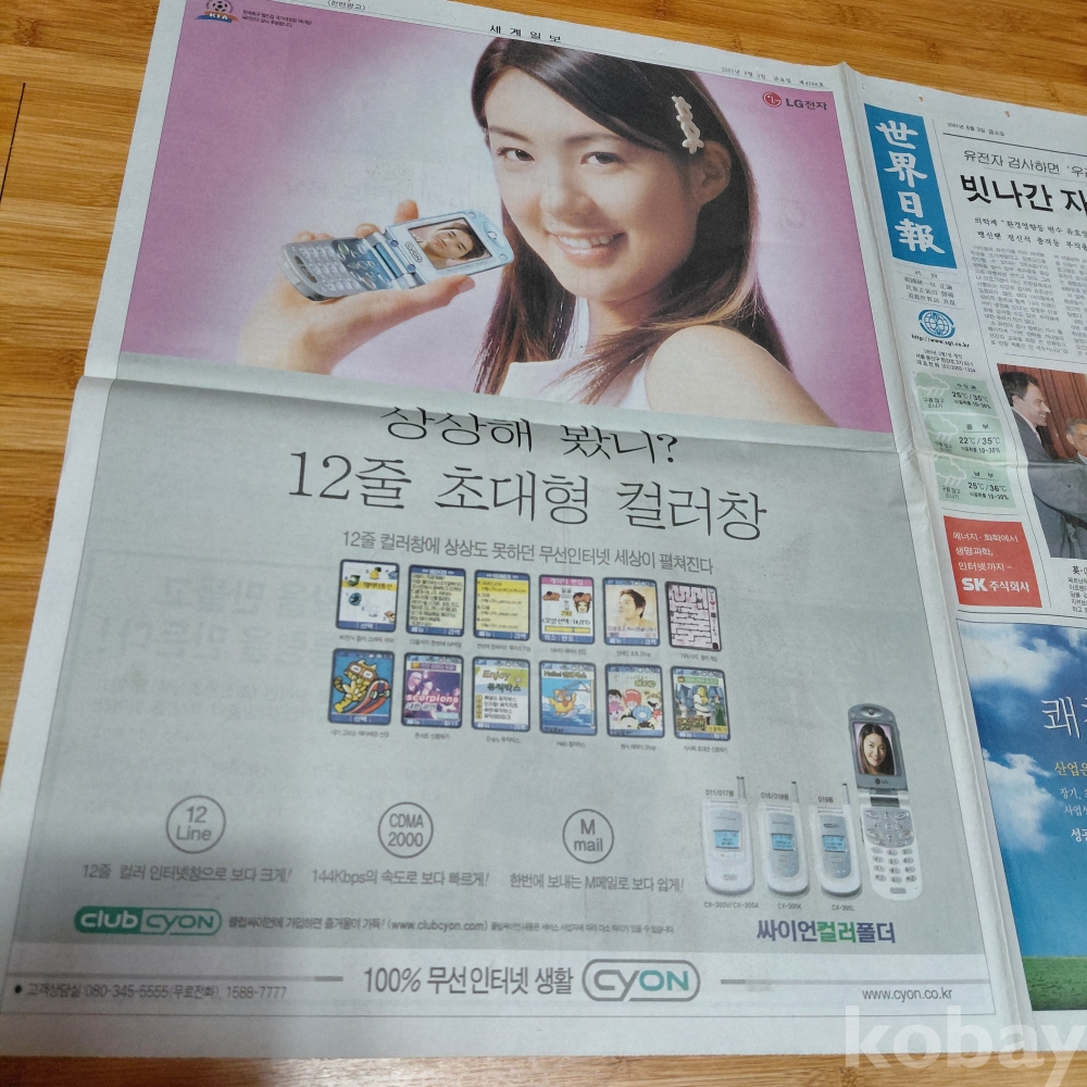 LG전자 싸이언 컬러 폴더 광고 세계일보 2001년 8월7일 올려드립니다