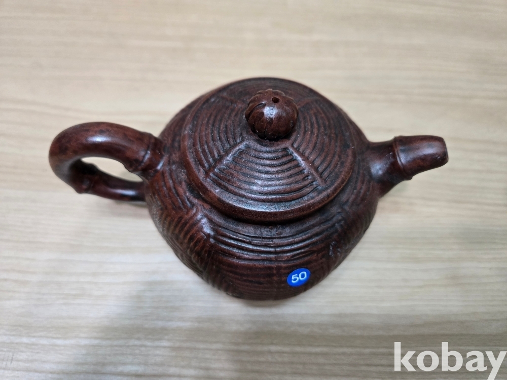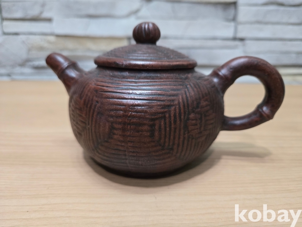 바구니 짜임 모양의 자사 주전자 도자기 입니다.
