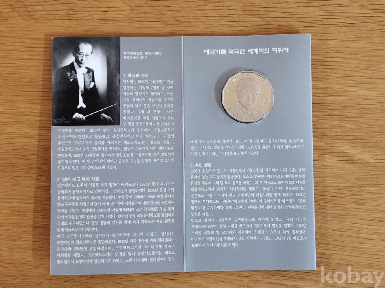 한국의인물 안익태/소재 백동메달/애국가 작곡,세계적 지휘자 -18