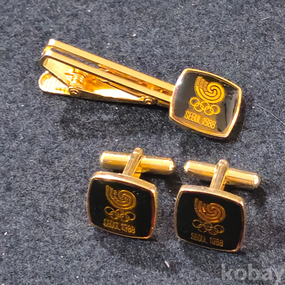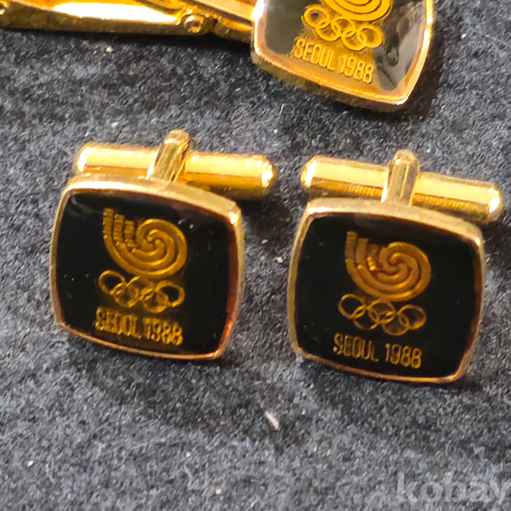 (((올림픽자료/근현대사자료/넥타이핀))) 1988년 서울올림픽대회기념 엠블렘 넥타이핀 & 카우스버튼