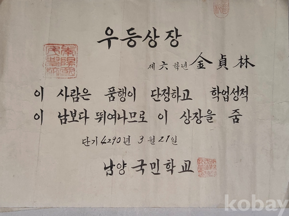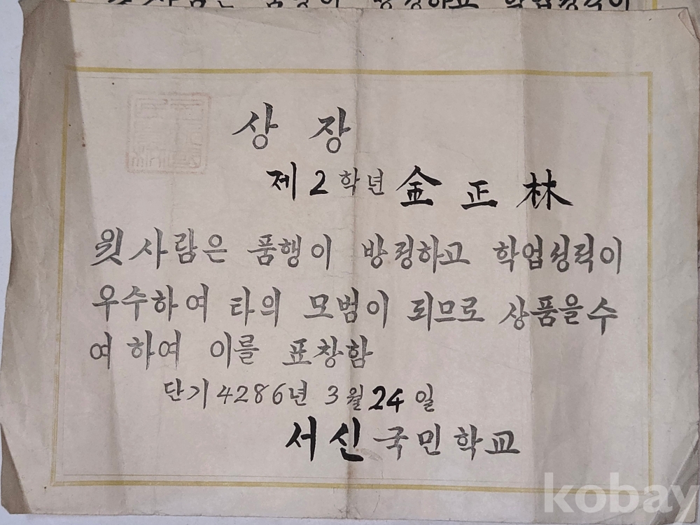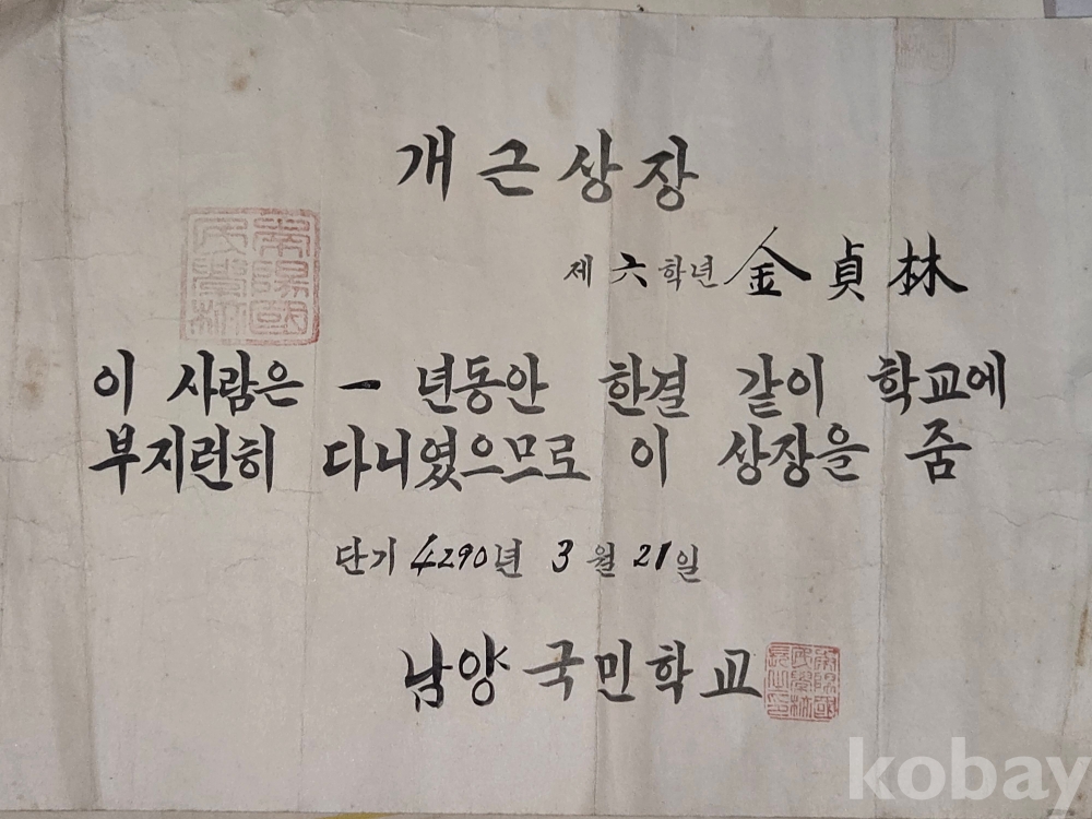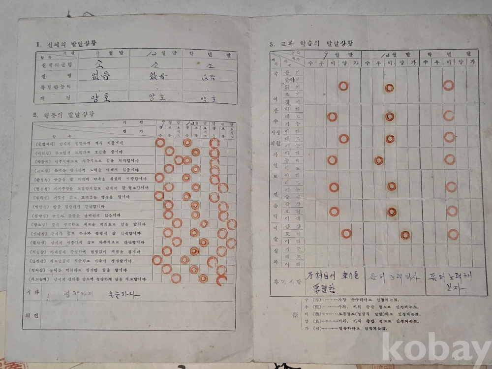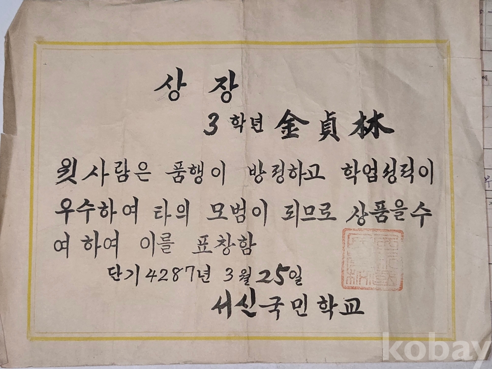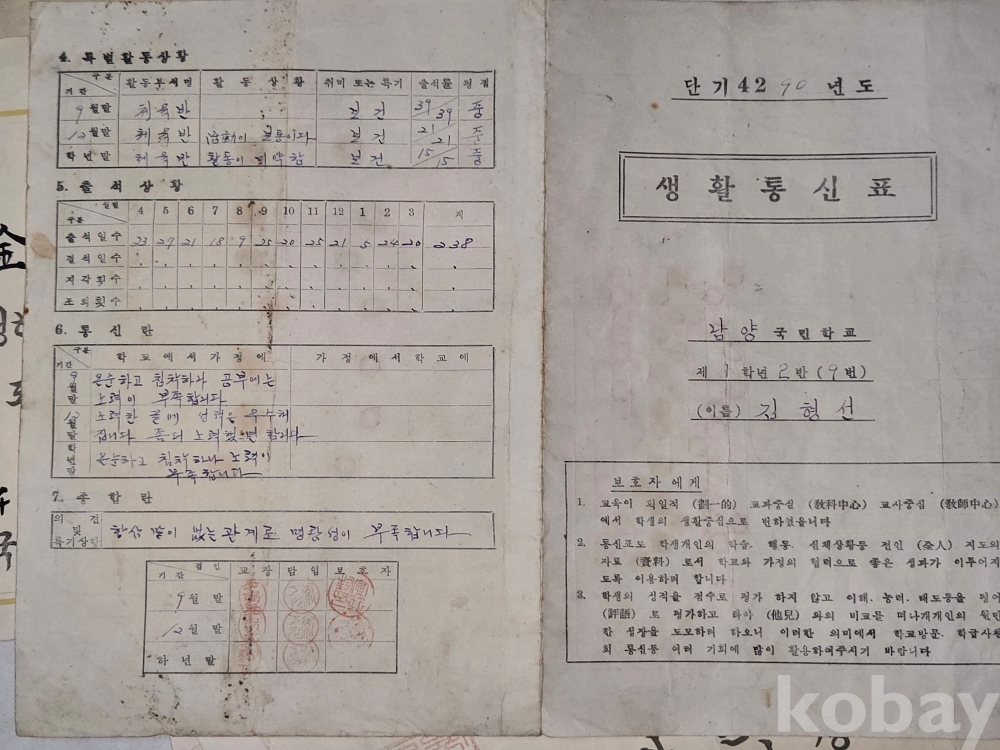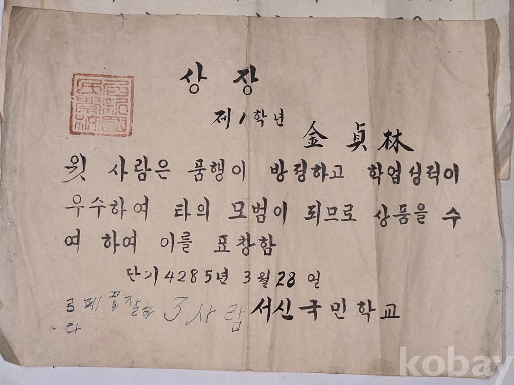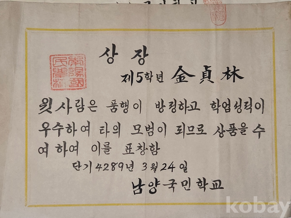 1952년 부터 1957년 까지의 상장과 통신표 ==7점 일괄