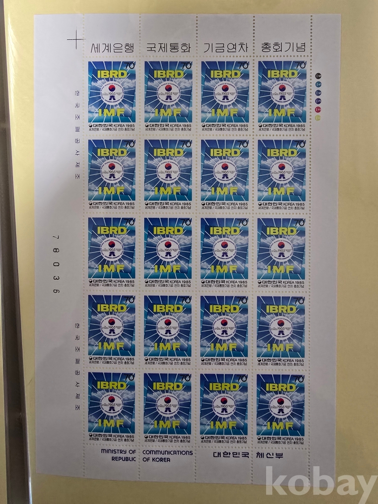 미사용 전지우표/85'10.8세게은행국제통화기금 연차총회