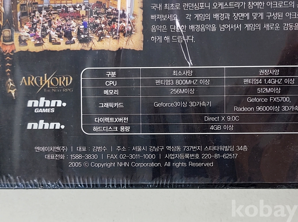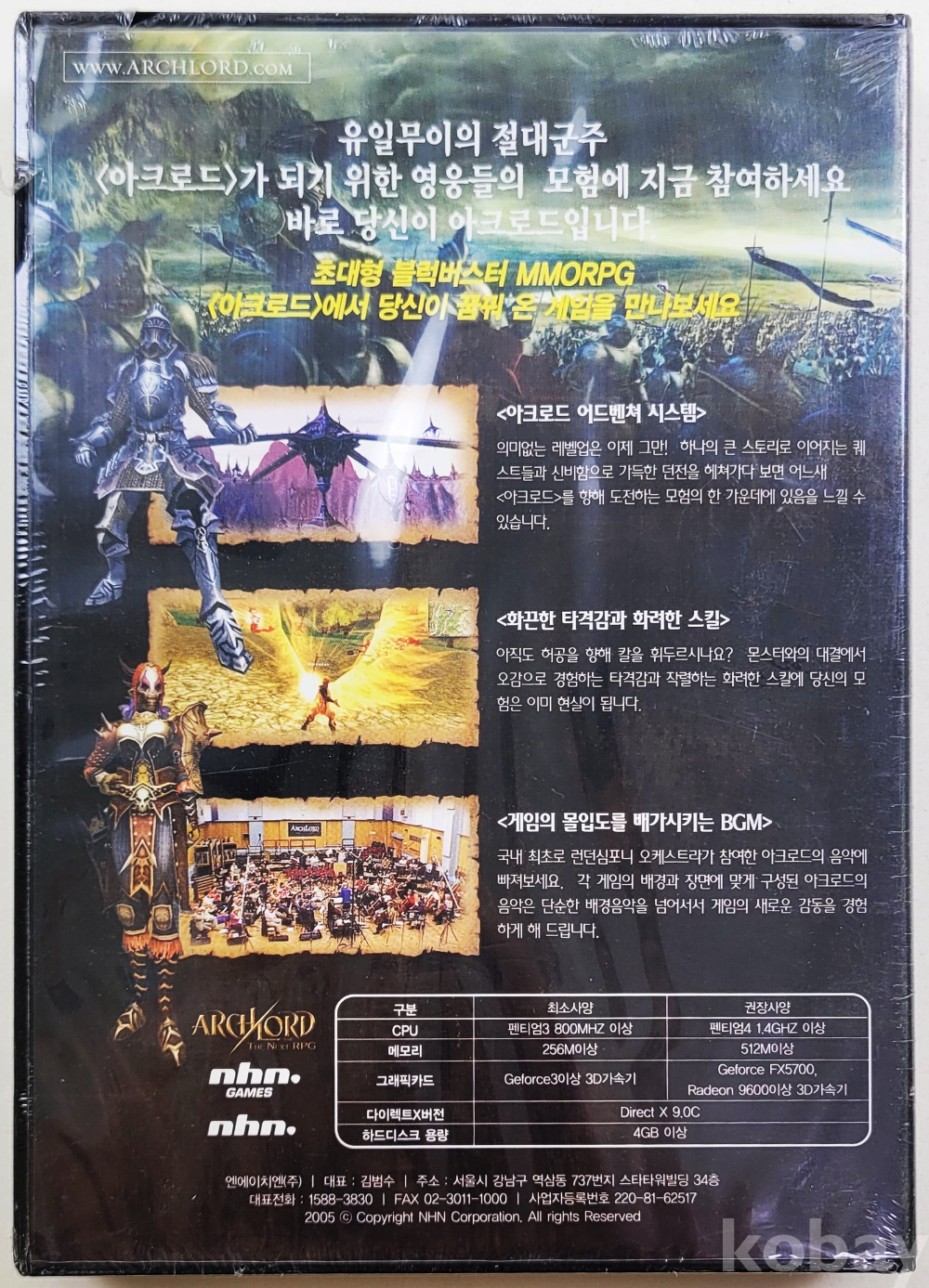 물 품 명 | 미개봉 / 아크로드 : the Next RPG / 초대형 블록버스터 MMORPG / 2005년 / 엔에이치앤 |