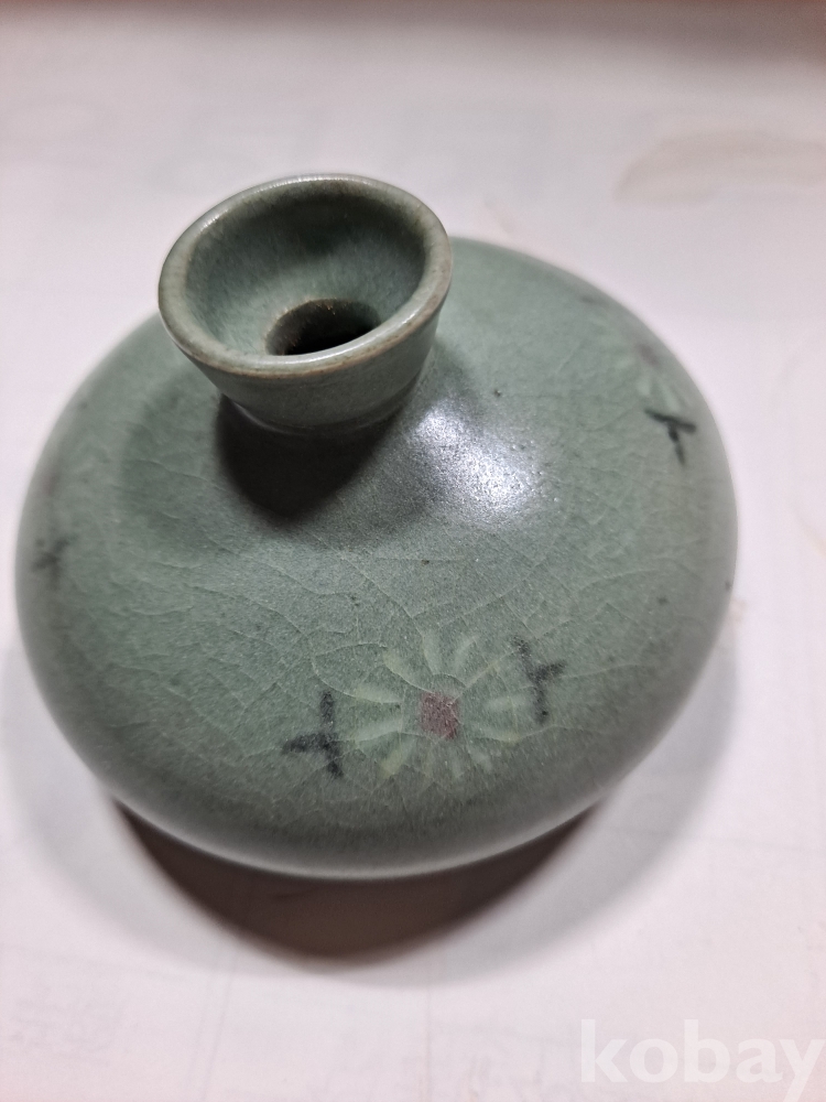 청자흑백 상감 홍진사 국화문유병 입니다.