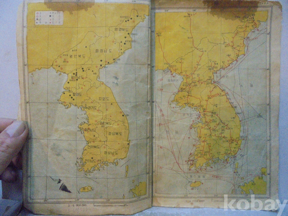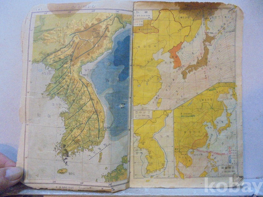 시골에서 수집한 옛날 근대사자료 서울 조선과학 문화사 발행 최근 우리나라 지도 교과서 입니다.