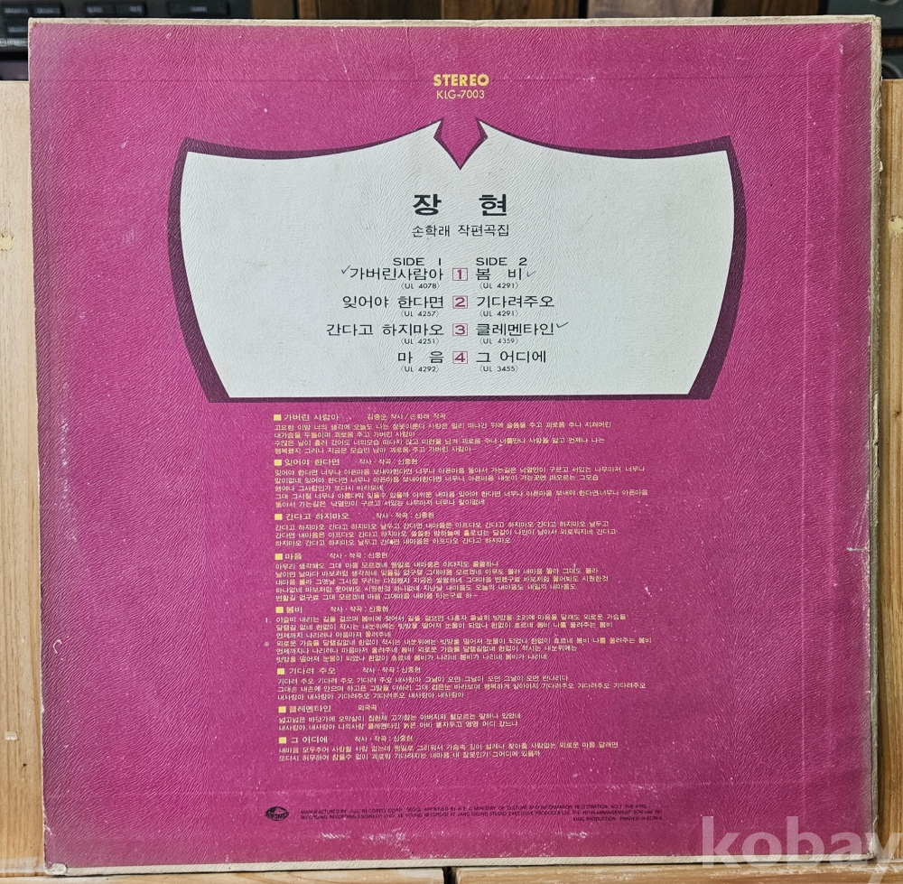 | 자켓상태 | EX : 약간의 마모, 모서리 찢김 존재 | 음반상태 | EX : 재생에 영향 없는 가벼운 기스 존재 | 발매정보 | 초반 | 가사지여부 | 유 |