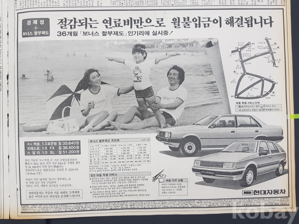 **** 1985.07.18(조선일보)/현대자동차 할부제도 광고포함/약 12면